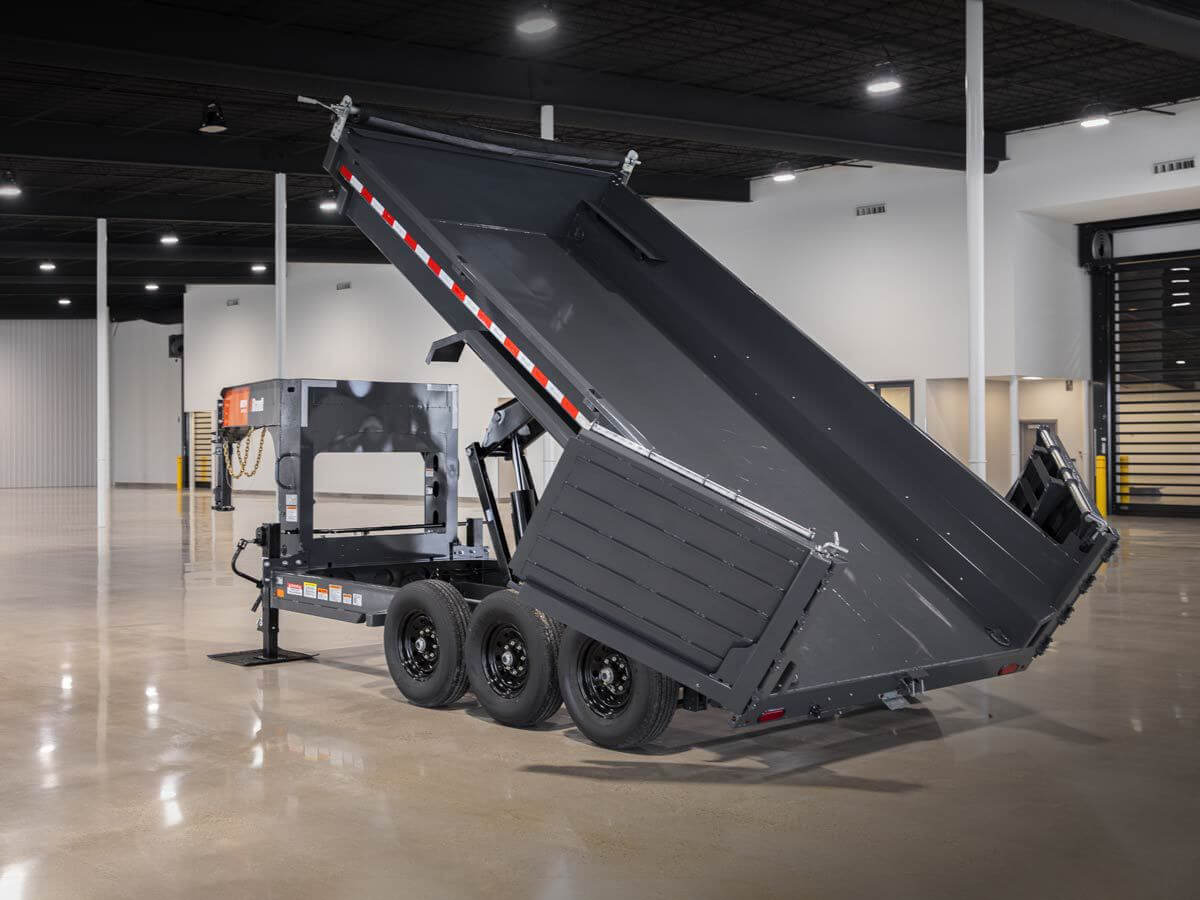 A 3-way hydraulic power unit enables operators to lift the trailer into power up, power down, or gravity down use with the push of a button for effortless dumping or loading.
